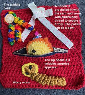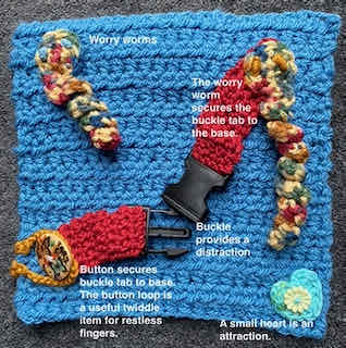 It’s all about having fun and seeing where your creations take you. Just start with one idea and keep going. You might be surprised where you end up. The sensory pleasure for the recipient and timeout for you to create a twiddle mat, muffin or cuff is priceless and of benefit to you and the recipient.