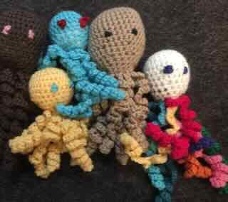 Isn’t the octopus beautiful. Ready to become someone’s octopal. Maia has supplied us with a link to the pattern online she uses: https://www.crochet365knittoo.com/crochet-octopus-preemies